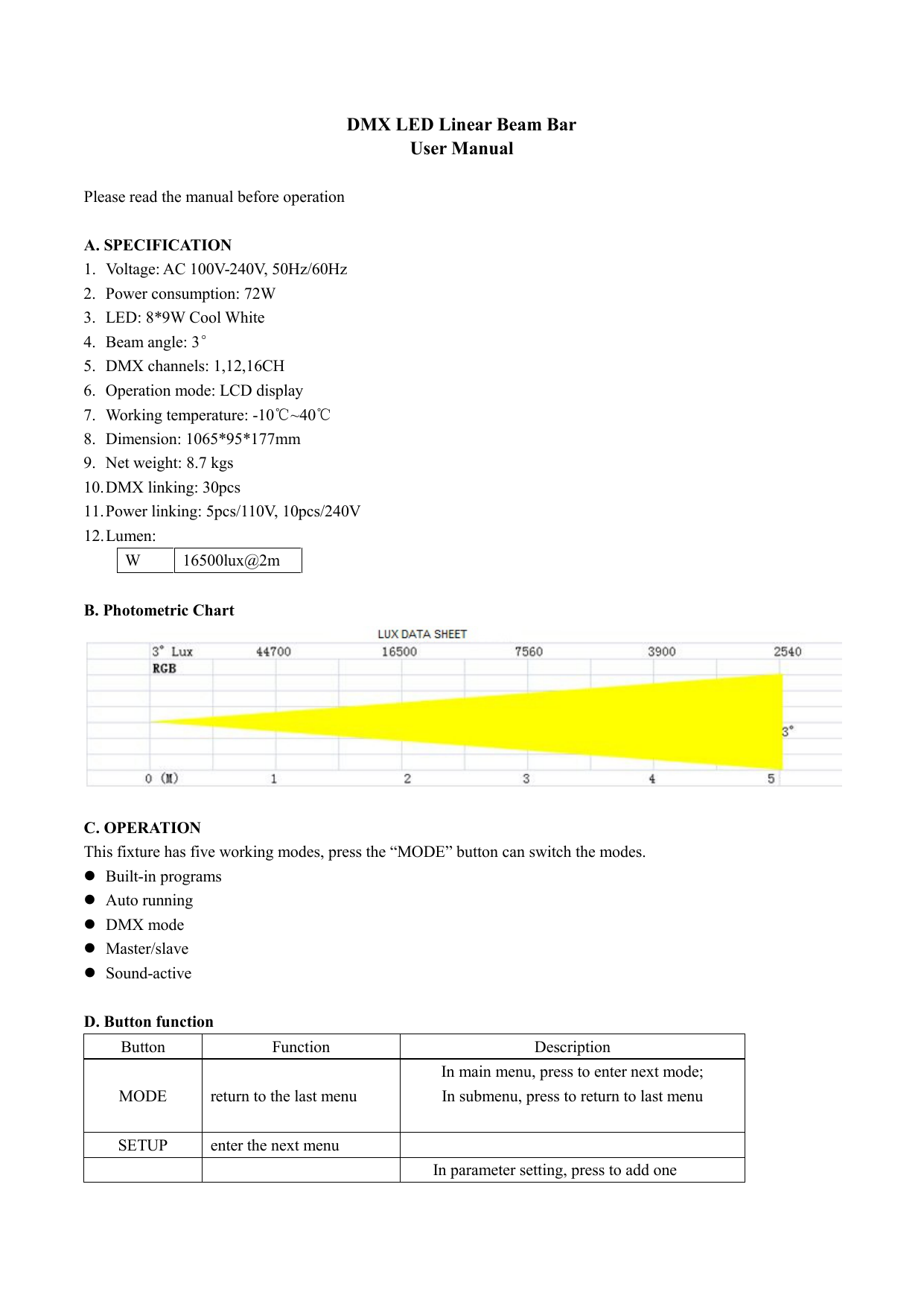 The control is done by ten switches. Impression x4 bar 10 dmx chart (v1.6) from software version: The point of this exercise is to find the channels that you're going to need to run your show and to figure out where they sit in the whole of the fixture 's dmx layout. This way, we can create highly custom color combinations. This means that 512 channels are controlled digitally through 1 data cable.